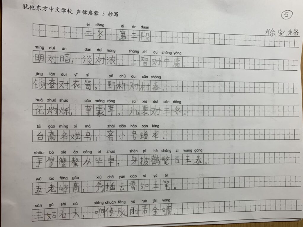 受新冠疫情影响,东方中文学校的夏季课程全部转变为线上上课,这也是建校以来第一次尝试网络授课。除了常规课程,学校还针对同学们的情况,第一次在夏季学期开设了一个综合班,招收已经有一定中文基础的同学进行中文朗读和书写的强化教学。